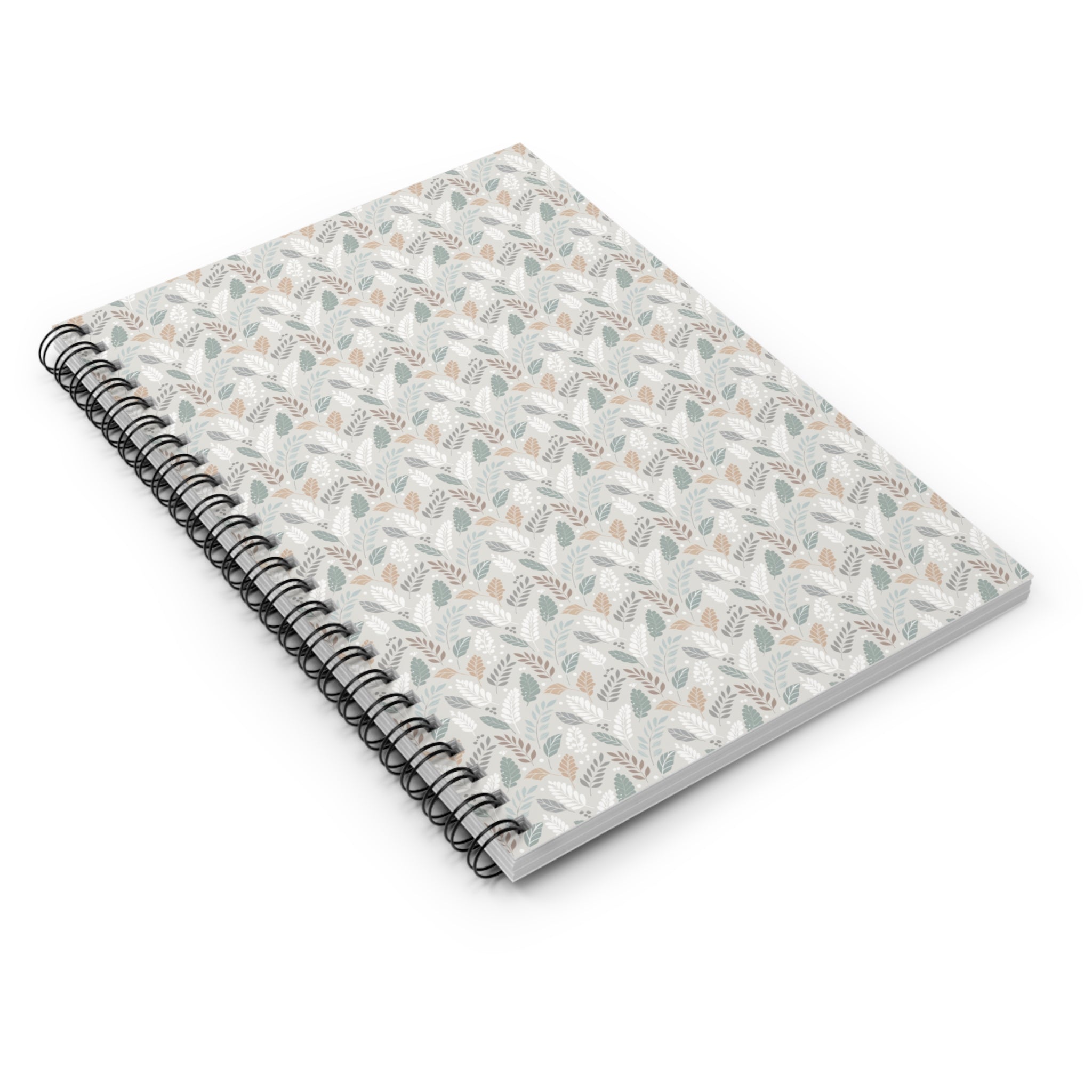 Soft Botanical Leaf Spiral Notebook - Neutral Nature-Inspired Spiral Notebook